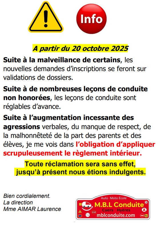 Concerne tous les titulaires du permis B (obtenu depuis 2 ans minimum) qui souhaitent conduire un deux-roues motorisé de 50 à 125 cm3 (L3e) ou un tricycle à moteur L5e (scooter à trois roues) de plus de 50 cm3 ont l’obligation de suivre une formation minimum de 7 heures: 2h de théorie, 5h de pratique (2h hors cicu, 3 h en circu)