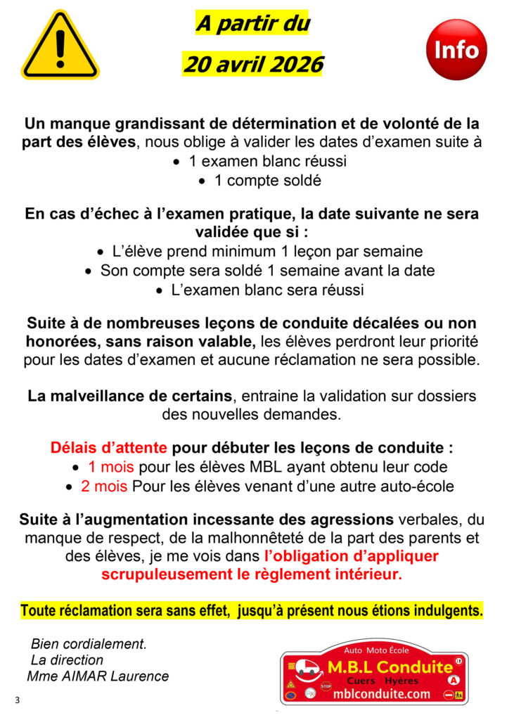 SUITE A DE NOUVELLES REGLEMENTATIONS